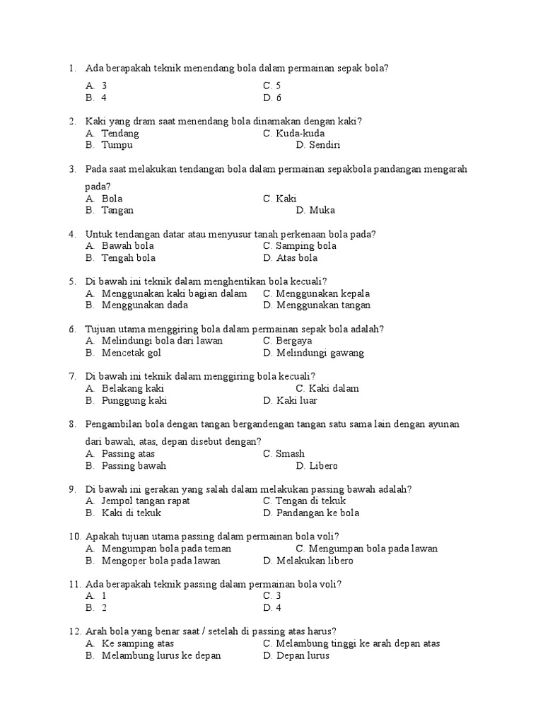 Semuanya perlu dikuasai oleh pemain sehingga bisa melakukan serangan maupun pola bertahan. Passing atas adalah pukulan mengumpan bola atas, sedangkan passing bawah adalah mengumpan bola bawah. Pemain sepak bola hebat umumnya menguasai beberapa teknik permainan sepak bola dasar, di mana teknik dasar ini menjadi bekal awal untuk meningkatkan kemampuan pemain di masa depan. Teknik ini seakan menjadi cara untuk menyajikan bola agar permainan berlangsung. Penguasaan dalam permainan bola voli bisa dijadikan untuk penilaian dari keahlian individu didalam memainkan permainan bola voli. Dalam permainan bola voli memerlukan kerjasama antar pemain dalam satu tim dan ketrampilan yang harus dimiliki pemain. Dalah permainan sepak bola setidaknya terdiri 11 teknik dasar yang mesti dikuasai oleh para pemain, tapi dalam hal ini saya akan menjelaskan 9 teknik saja yang diantaranya sebagai berikut : Teknik permainan bola voli yang bertujuan untuk mengambil bola hasil servis lawan dinamakan. Olahraga voli dilakukan di lapangan dengan luas yang ditentukan dan dipisahkan oleh net atau jaring. Memvoli dan memantulkan bola ke udara harus mempergunakan bagian tubuh mana saja, asalkan dengan pantulan yang sempurna (tidak ganda). Teknik mengumpan bola bawah teknik ini dalam permainan bola voli hampir sama dengan teknik mengumpan. Tidak hanya teknik kesiapan mental, strategi dan kondisi tubuh yang fit juga menjadi suatu faktor penentu kemahiran dalam memainkan permainan bola voli seseorang. Teknik dasar bola voli dan penjelasannya.